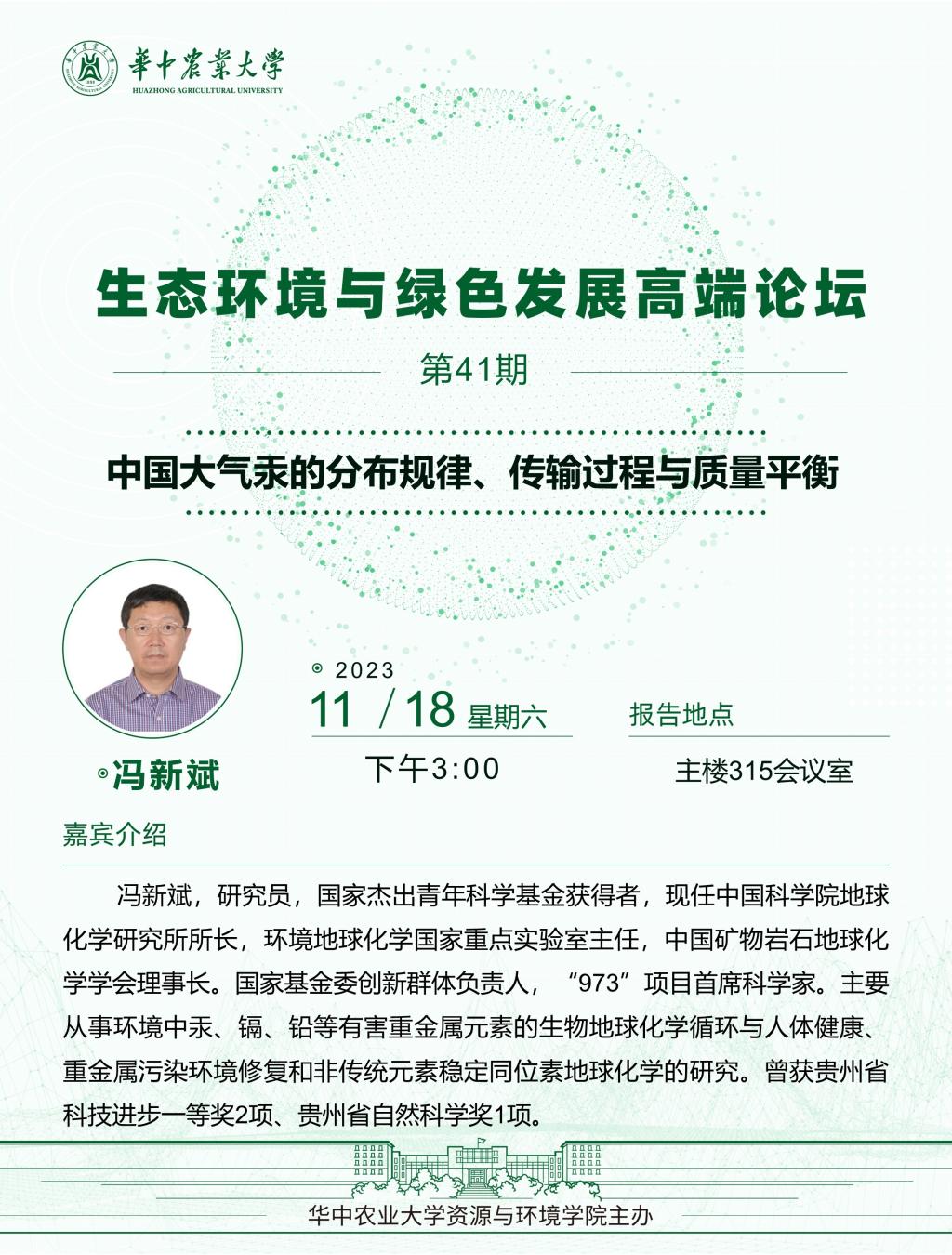 【高端论坛】41期:中国大气汞的分布规律、传输过程与质量平衡