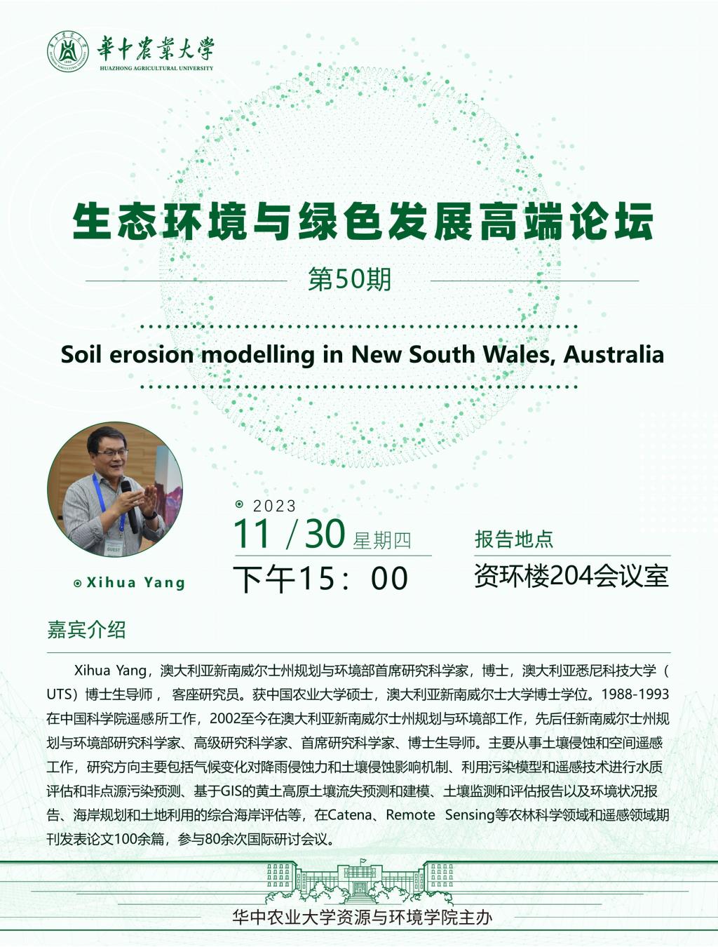 【高端论坛】第50期:Soil erosion modelling in New South Wales, Australia