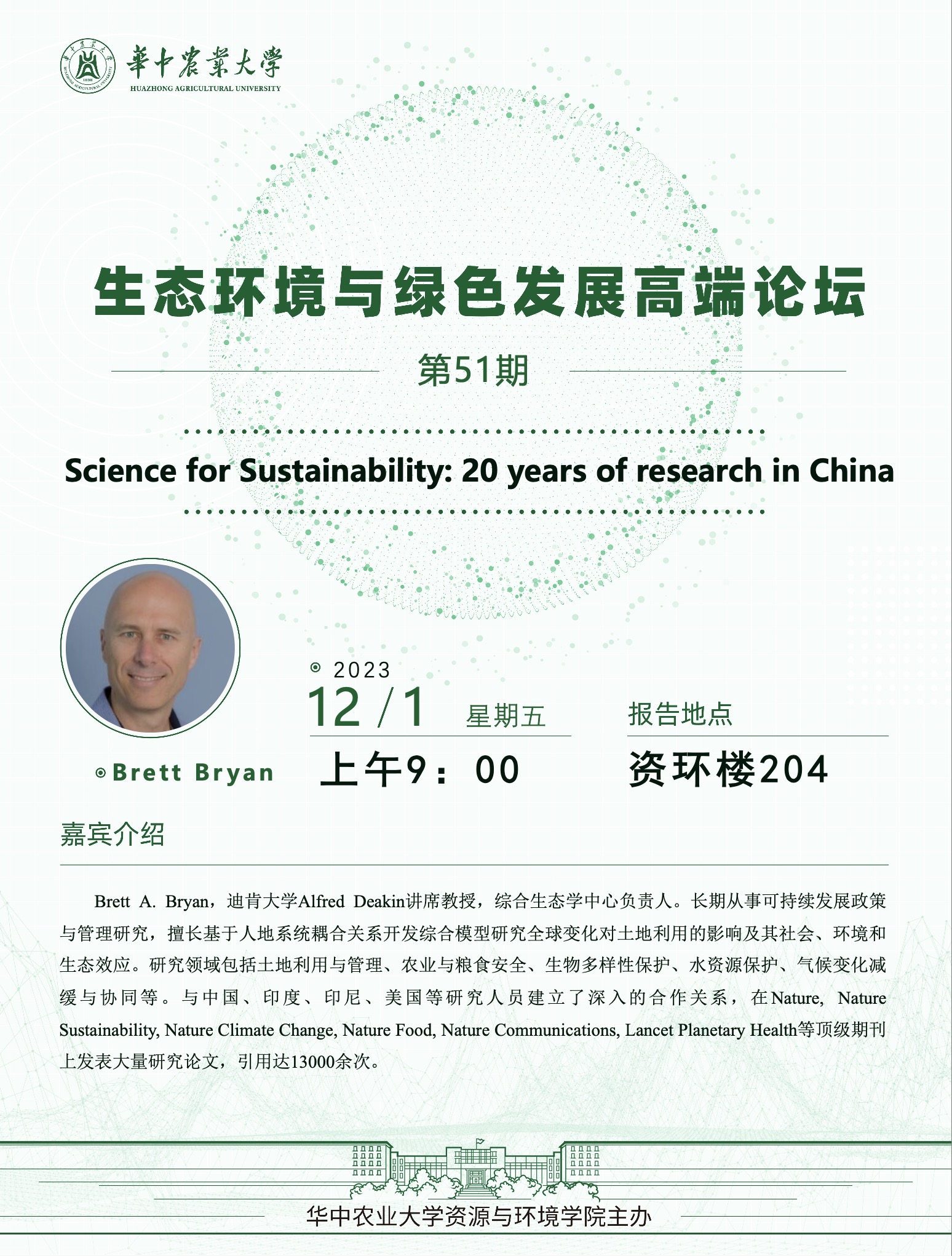 【高端论坛】第51期:Science for Sustainability: 20 years of research in China