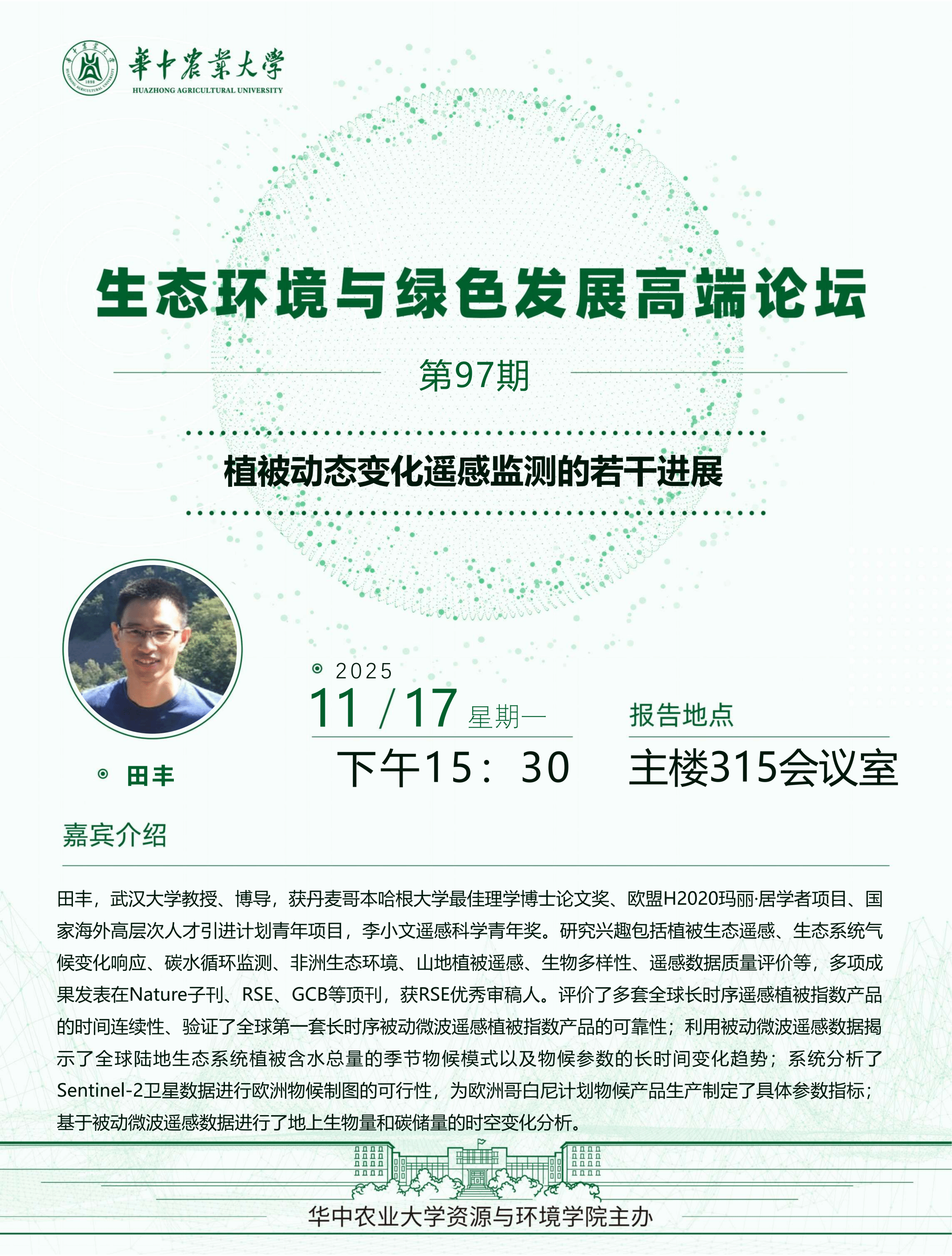 【高端论坛】第97期:植被动态变化遥感监测的若干进展