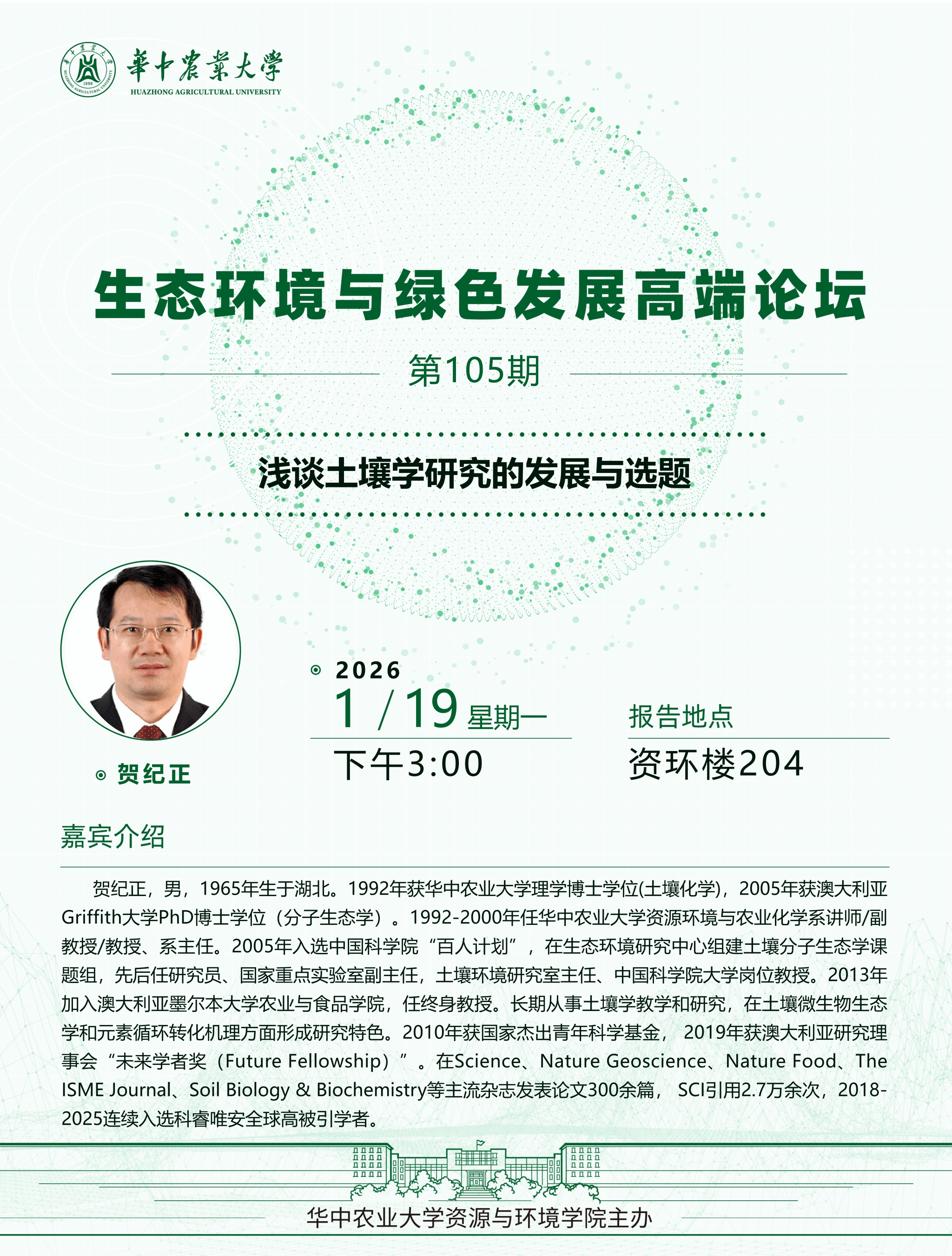 【高端论坛】第105期:浅谈土壤学研究的发展与选题