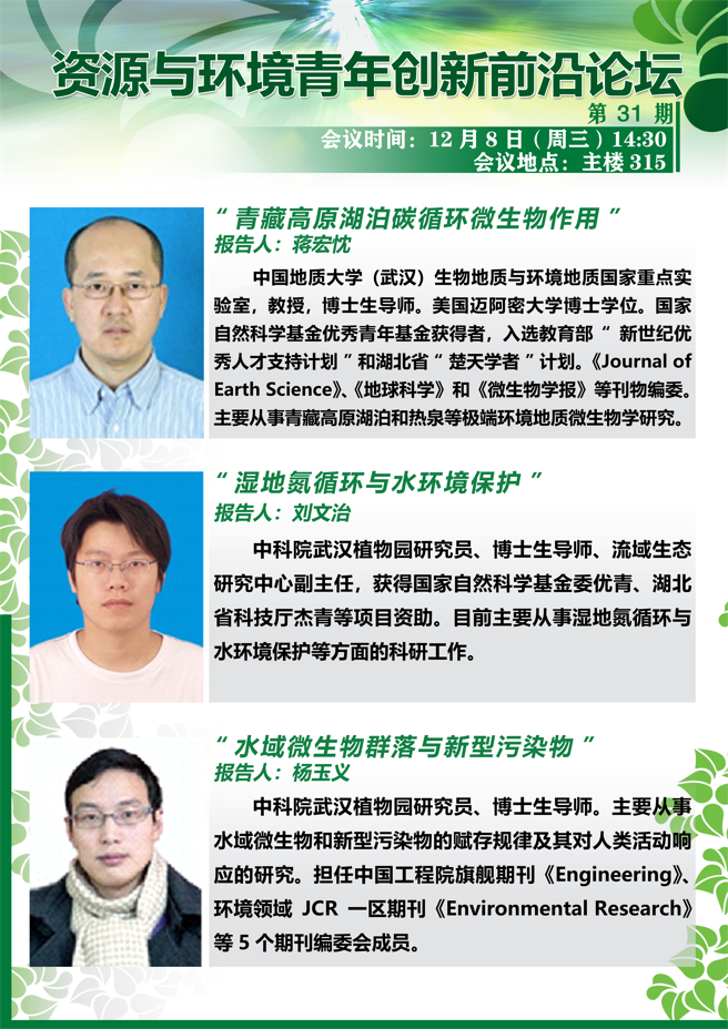 【前沿论坛】蒋宏忱、刘文治、杨玉义做客资环青年创新前沿论坛