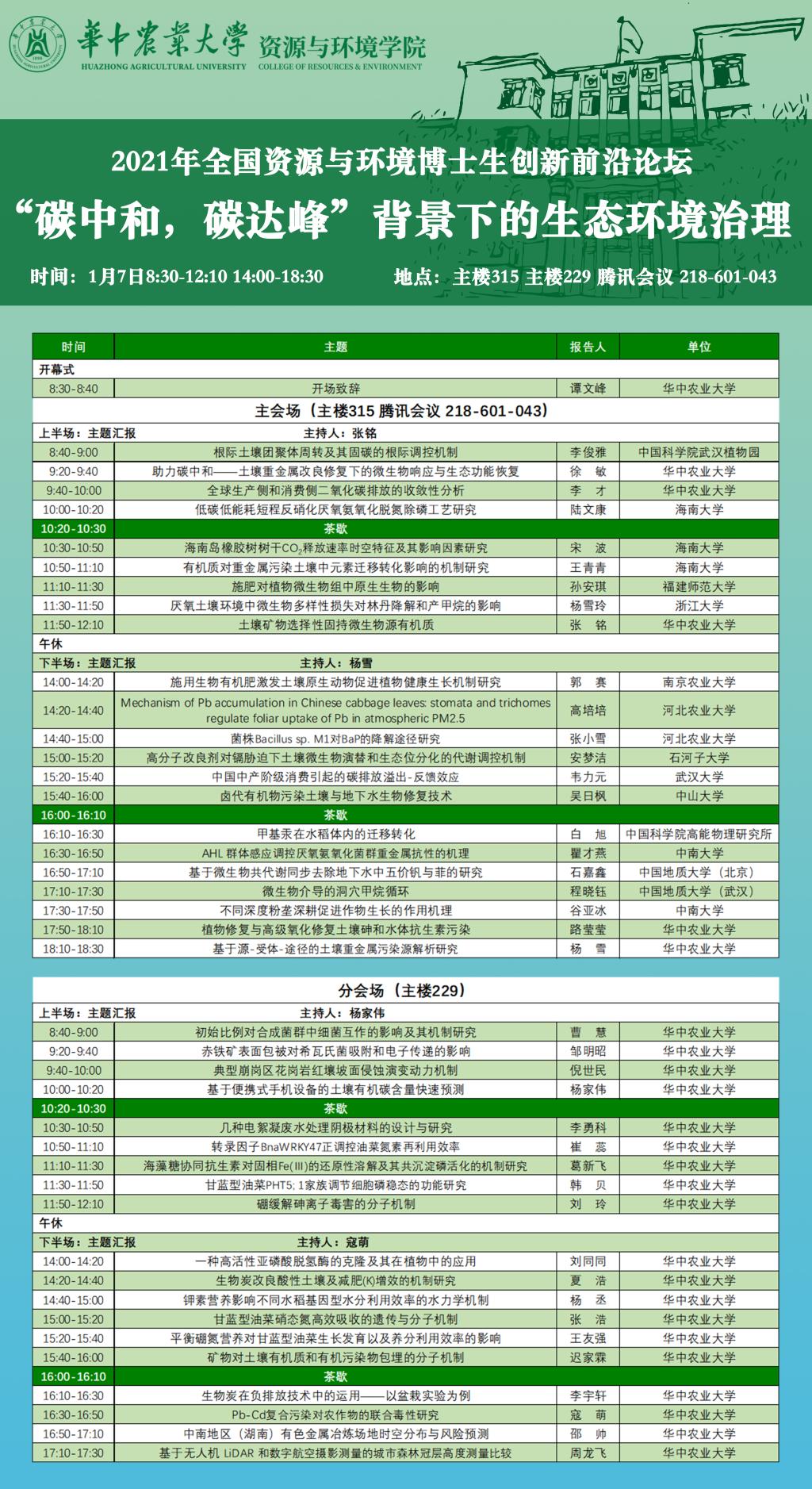 2021年全国资源与环境博士生创新前沿论坛——“碳中和,碳达峰”背景下的生态环境治理