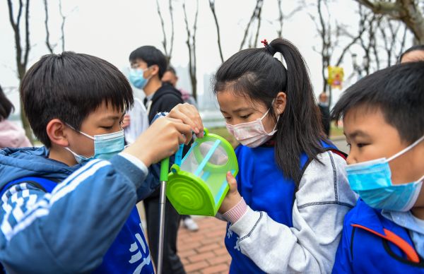 同学们在梦想花园捕捉昆虫(记者许魏巍 摄)