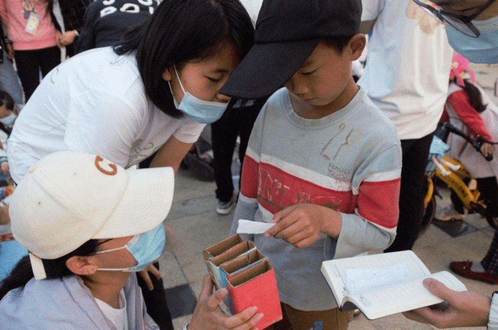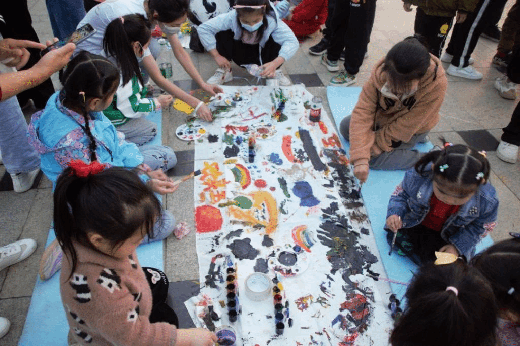 活动受到当地居民的欢迎,许多亲子家庭的围观参与。志愿者带领小朋友们开展垃圾分类小游戏,并指导他们用废弃的塑料瓶和易拉罐制作精美的玩具、饰品,小朋友们在画布上随心所欲地画下了他们脑海里的美好生活。不少家长也参与到活动中来,和孩子一起学习塑料球DIY的制作技巧等,家长和孩子一起在画布上写下环保寄语。在活动尾声,家长引导孩子与志愿者一起收拾过后的活动现场,并在志愿者撤离的夜幕中用手电筒为他们照亮前行的路。