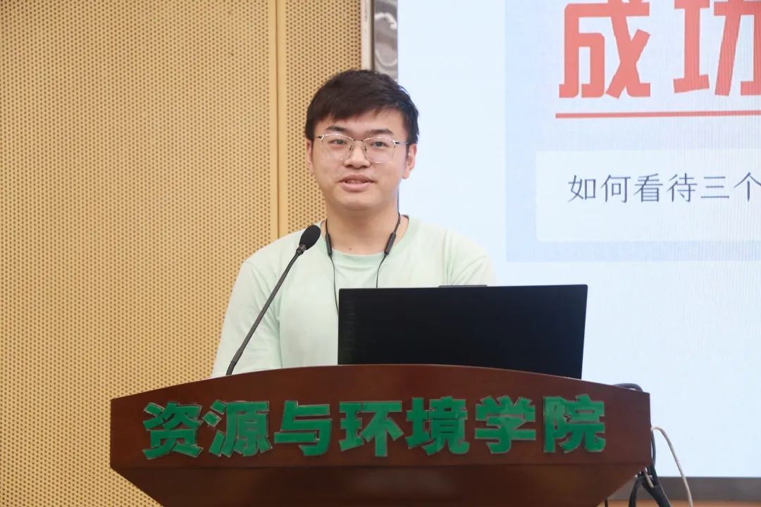在第二场的分享会上,环科1801班的安锡鼎针对考研途中容易出现的焦虑情绪,以“我和我自己的对抗”为题强调了复习期间心态调整的重要性。他认为,要稳扎稳打,做好自己的时间规划,这样才不会受到身边其他人复习进度的影响。