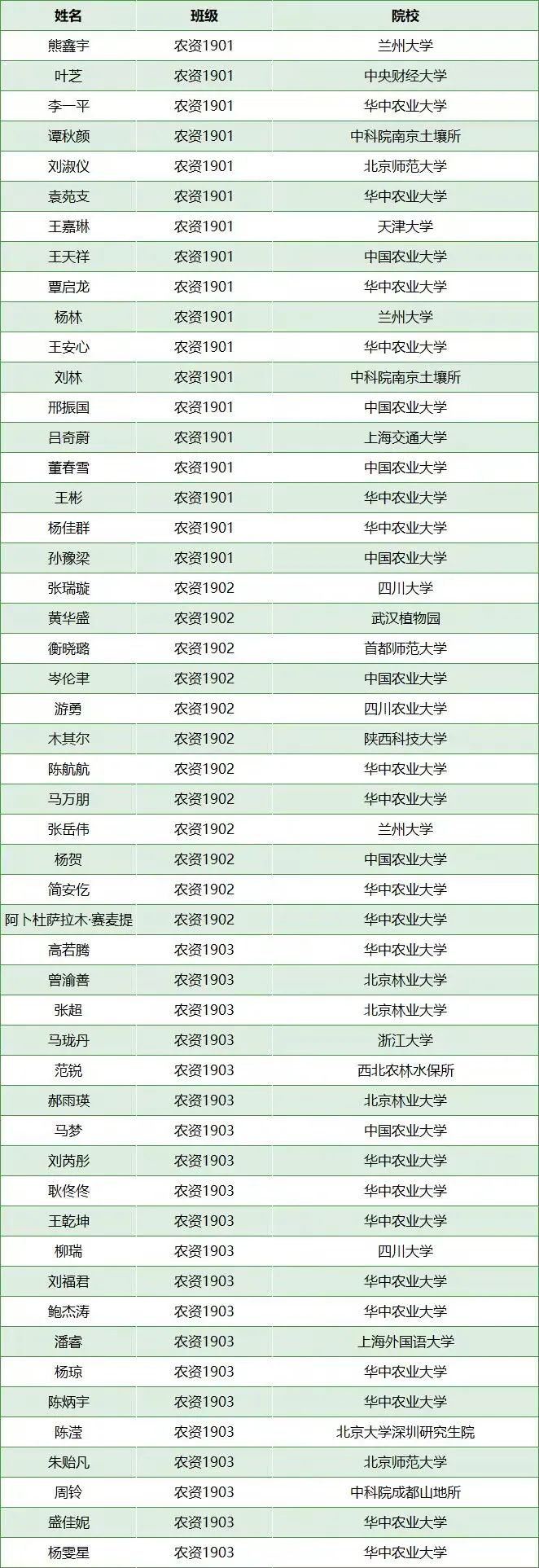 经统计,截止5月20日,2019级本科生共计322人,升学人数(境内)183人,占比56.83%,国(境)外升学11人。其中农业资源与环境专业的升学人数共计51人,详情如下: