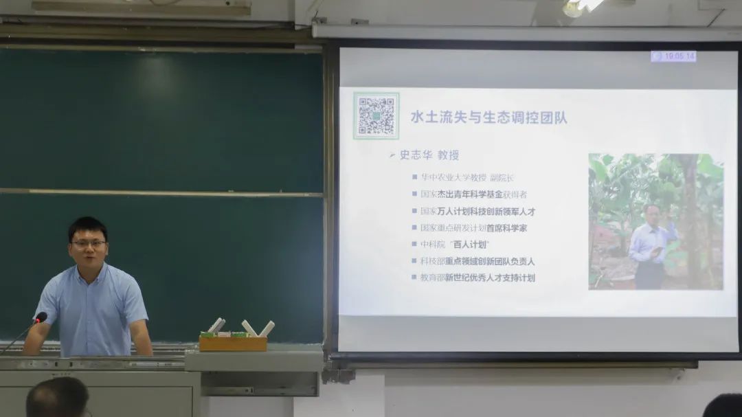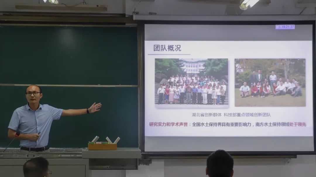 作为水土保持与环境生态课题组的宣讲人,王军光详细阐述了团队聚焦南方区域特点,开辟东北黑土新战场的研究方向,并从论文、专利、学生发展三方面介绍科研成果。此外,团队对于学生的培养计划接轨国际,鼓励学生参加各大会议,出国交流。“在国家加强生态文明建设,重点强调水土保持重要性的大背景之下,水保人才缺口大,作为我校唯一与水利部对口就业的专业我们未来的发展一定会更好!”王军光总结道。