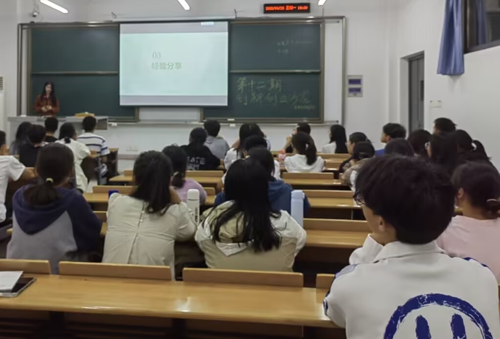 9月25日晚,为帮助我院23级新生在大学期间有更明确的规划,院团委双创中心以“让青春在创新创业中闪光”为题于四教C311举办第十二期创新创业沙龙。方姝婕、廖启灿、陈俊娴、周楠宇和农思琴等就创新创业中心的主要职能、SRF、华癸计划、创新创业类竞赛以及学科类竞赛等方面的内容展开分享。
