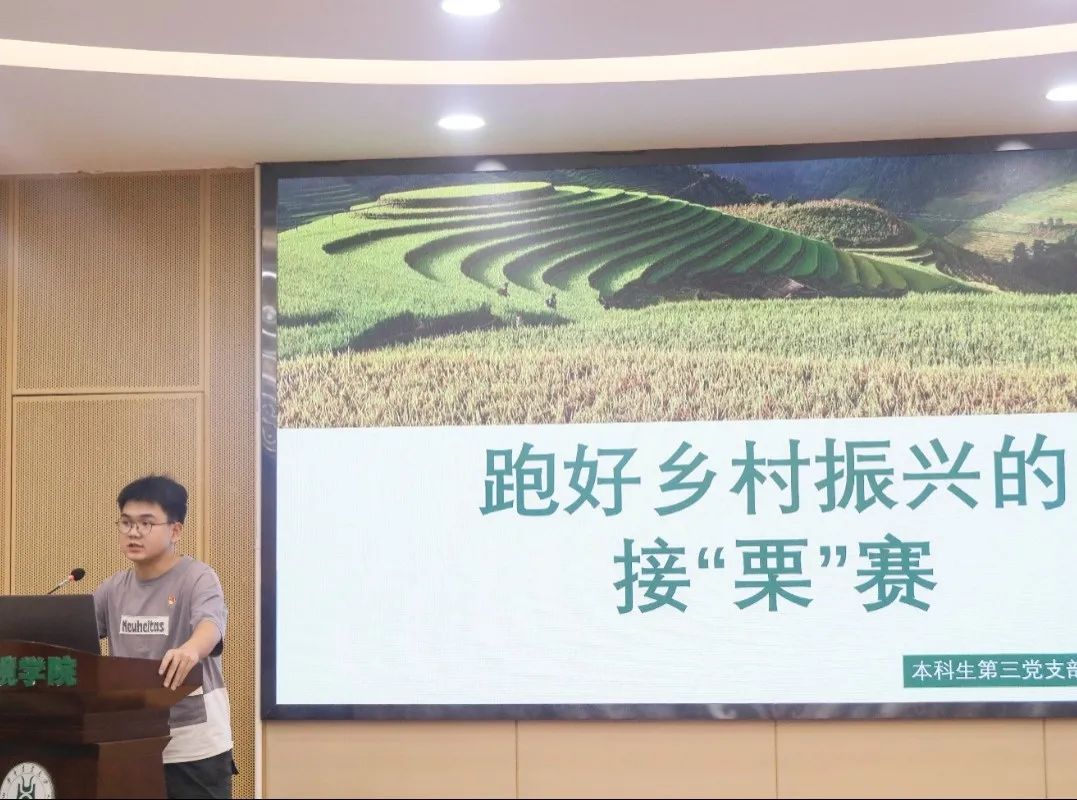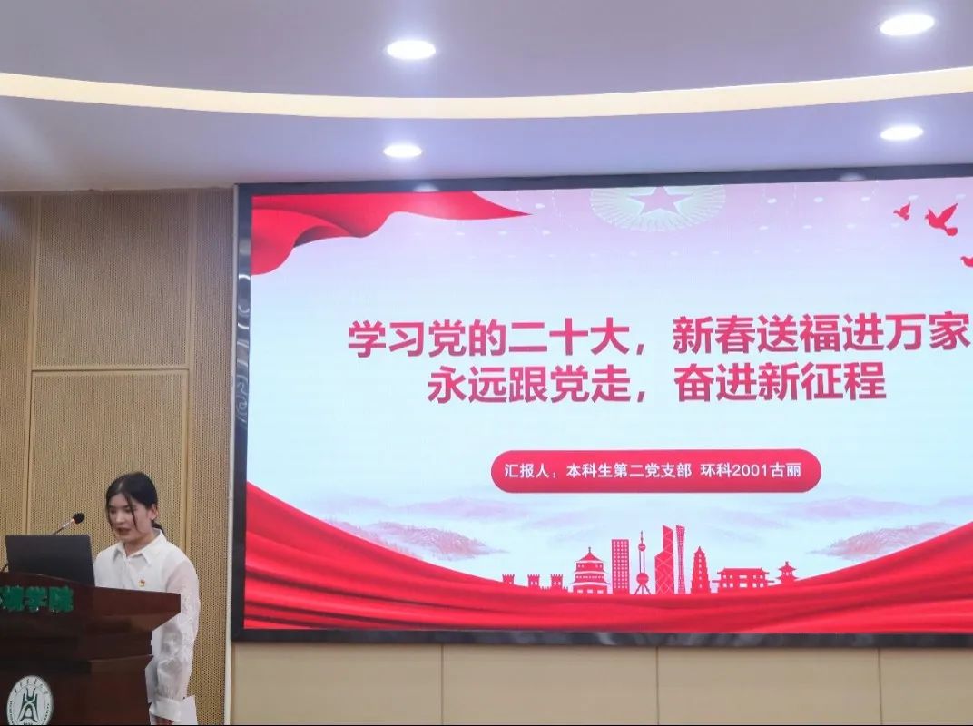 本科生第五党支部杨柳以 “做可堪大任的时代青年”为题,带领大家重温党史,从中共一大,到改革开放和社会主义建设新时期,再到中国特色社会主义新时代,一批批革命青年前赴后继,他们奋不顾身、勇担大任,毅然为党和国家献出自己的生命。演讲最后,她号召同学们:“时代赋予了青年无畏的底气,青年也定当披荆斩棘,笃定前行。不惧,展示青年勇气,不退,彰显青年担当。”