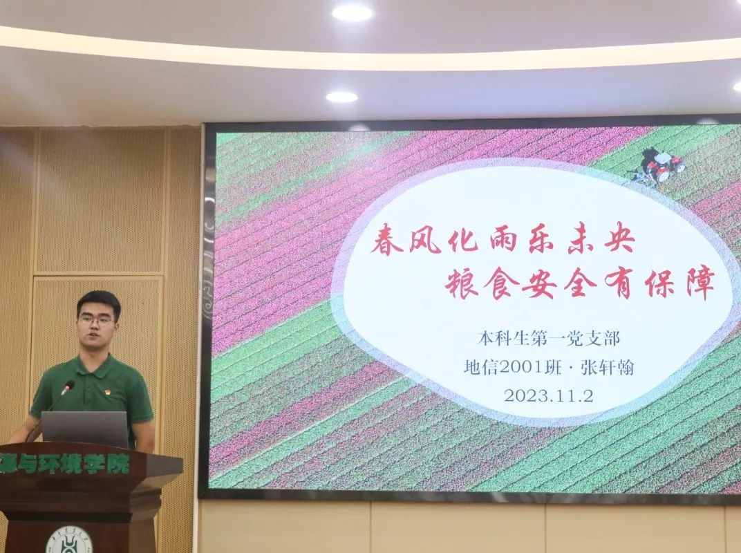 “如果信仰有颜色,那一定是中国红。”本科生第四党支部张雪梅以“心有信仰,脚有力量”为题进行分享,在悠扬舒展的背景音乐中,关于对信仰的理解,她饱含深情娓娓道来。对共产主义的信仰,对中国特色社会主义的信念,是共产党人的政治灵魂,是共产党人经受住任何考验的精神支柱,张雪梅讲到:“坚定理想信念,必先知之而后信之,信之而后行之。”本科生第二党支部张骏辉则以“红旗指引前进方向”为题讲述了云南革命的故事,重重磨难中,共产党人表现出的坚定信念令人肃然起敬。他结合自己在学校国旗护卫队的经历,真诚地说道:“我们要把对党的忠诚践行到实践行动中。”