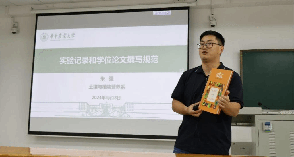 为了让同学们对如何做好实验记录有更直观深刻的体会,朱强副教授拿出自己博士期间的实验记录本与同学们分享。“细节决定成败。”他谈到实验记录的重要性,强调细节对成功的重要性。在讲述论文写作的十条简要规则时,朱老师结合学校的论文撰写规范,指出了毕业论文撰写过程中需要注意的关键问题。
