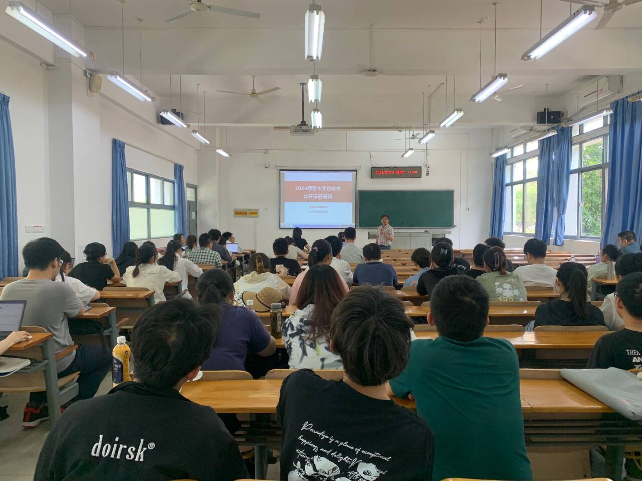 5月28日,我院2024届学士学位论文公开示范答辩在三教A103、A105教室如期举行。通过学生自愿申请、指导老师推荐、学院筛选来自七个专业和方向的12位同学成功入选,本次示范答辩共分两组,邀请到6位专任教师参与评审,两百余名不同年级不同专业的同学前来观摩学习。