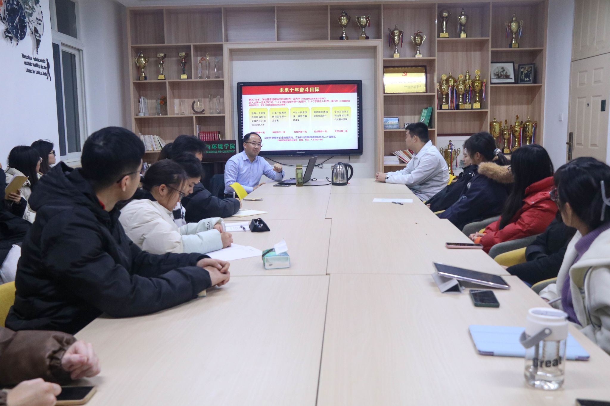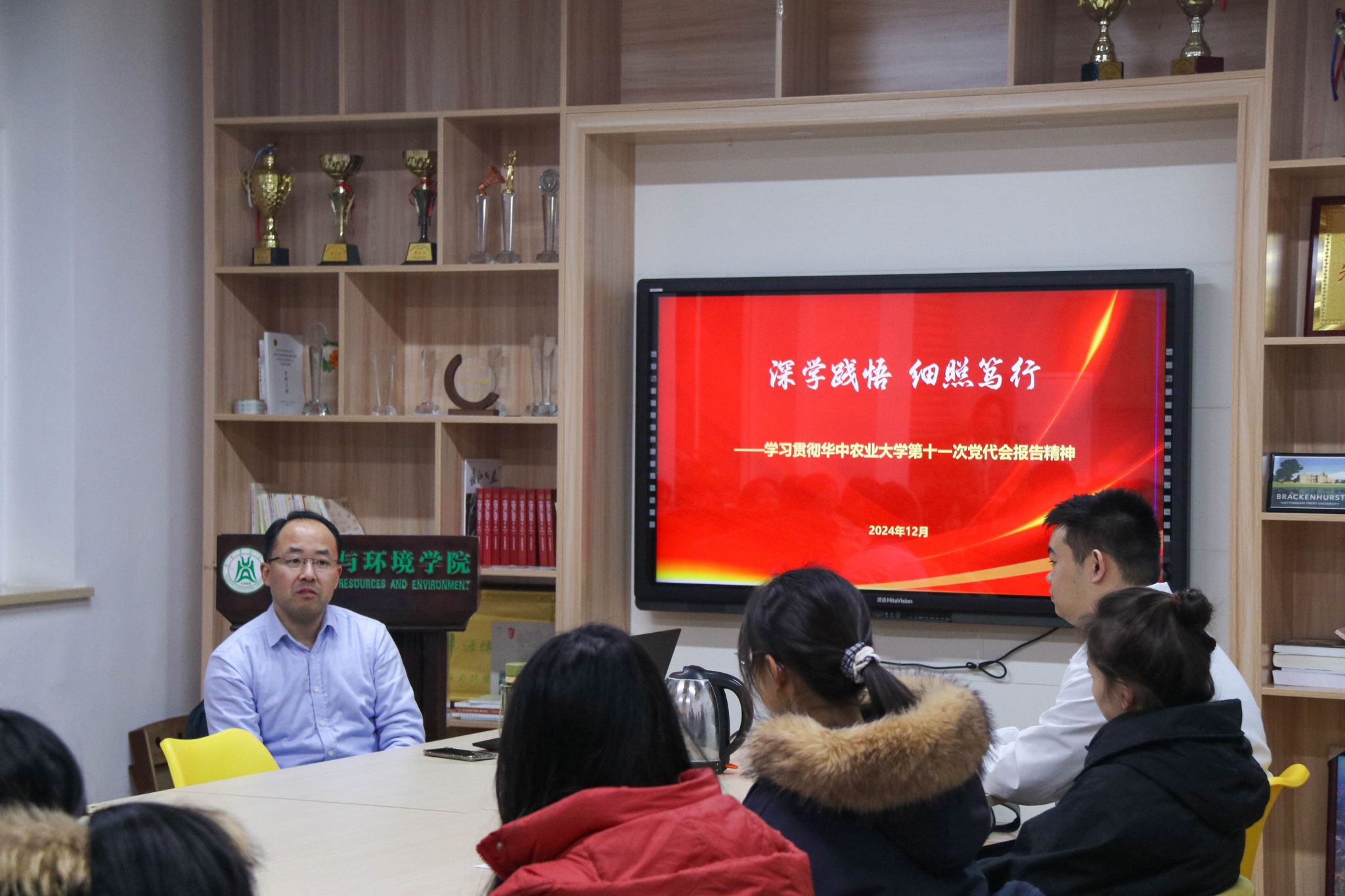 抓住本次党代会的几个关键词,戴珂向同学们具体阐述了本次党代会主要内容和核心观点。他谈到,本次大会的主题就是以习近平新时代中国特色社会主义思想为指导,深入学习贯彻党的二十大精神,党的二十届三中全会和全国教育大会精神。当代青年应谨记习近平总书记殷殷嘱托,以立德树人为根本,强国复兴为己任,以致图强融创之心。