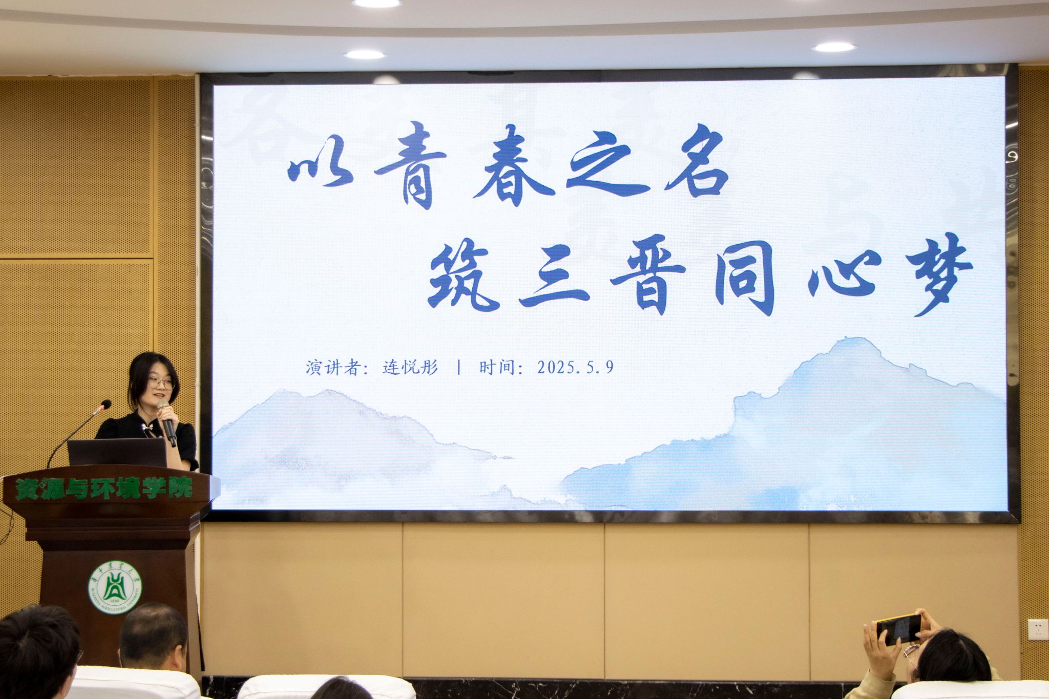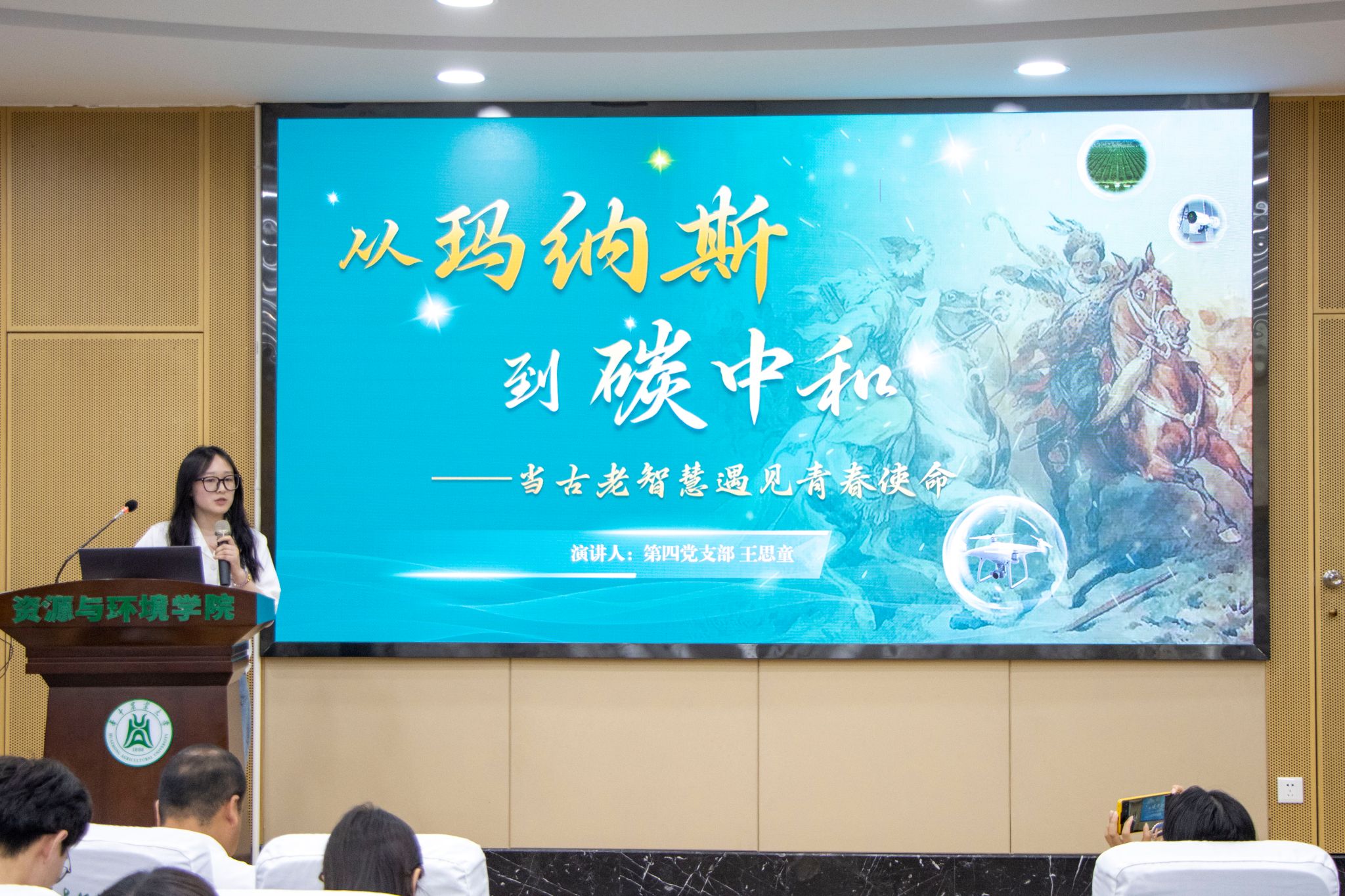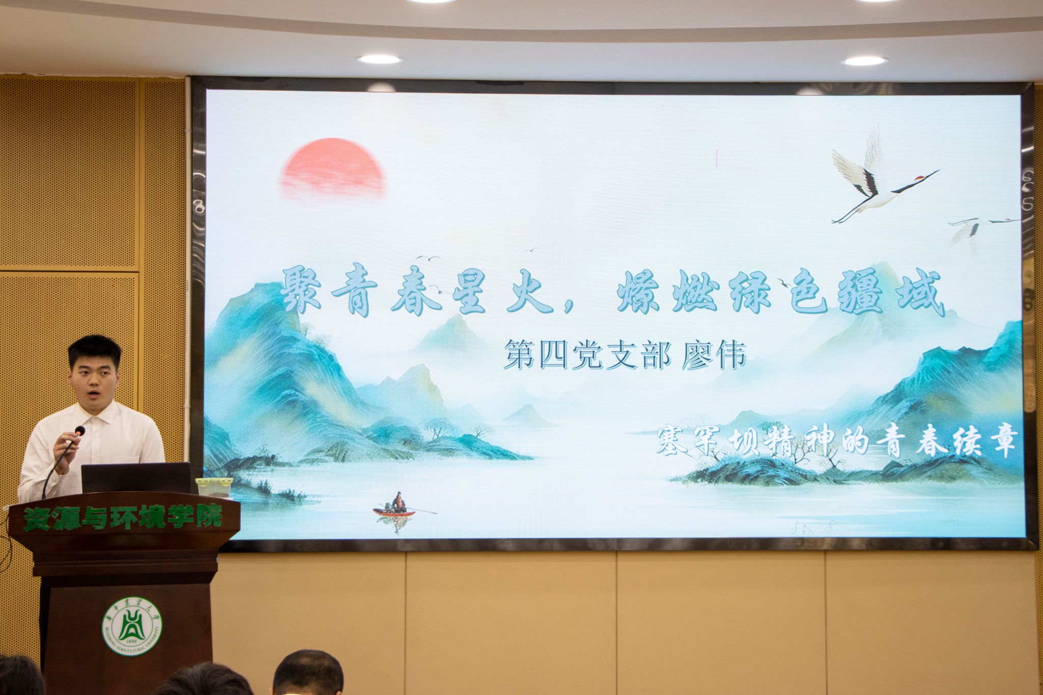 农资2302廖伟以《聚青春星火,燎原绿色疆域》为题,回顾了不同民族为改善生态环境付出的努力。他表示,这些变化展现了科技与团结的力量,让绿水青山变成金山银山。