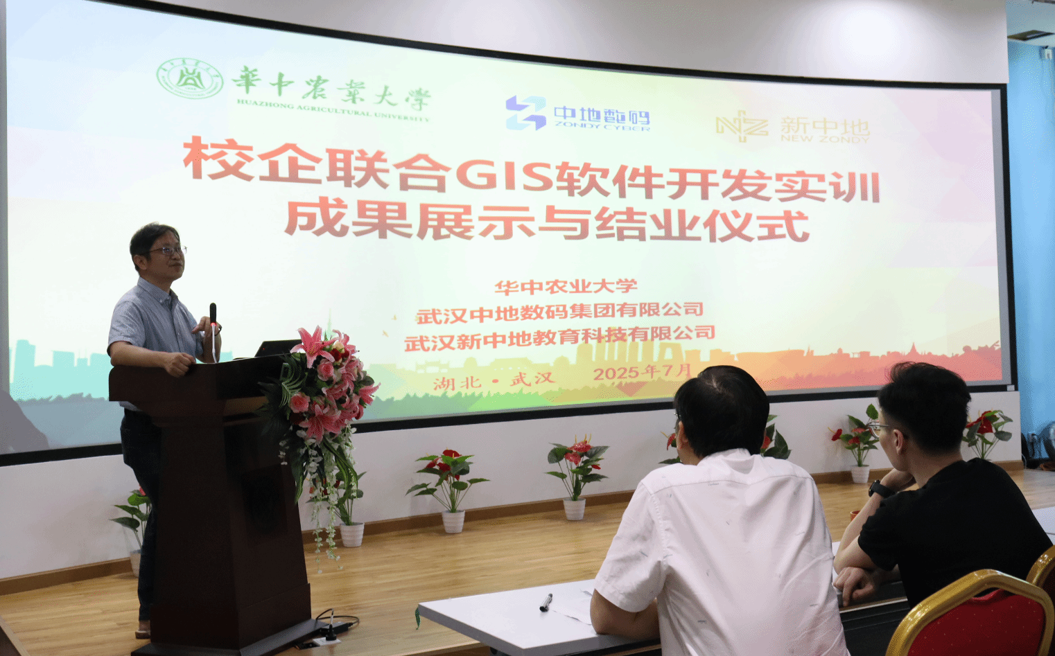 2025年7月25日,由学院与武汉中地数码集团有限公司联合举办的智慧城市构建校企联合实训在中地科技园学术报告厅圆满结业。英国365集团地理信息科学系主任王天巍、新中地教育高校合作部艾伟老师、新中地教育教研主任方胡朝等领导老师和全体参训学生参加了结业仪式。此次实训不仅是对学生实践能力的一次重要检验,更是学院深化校企合作、推动产学研融合的生动实践。