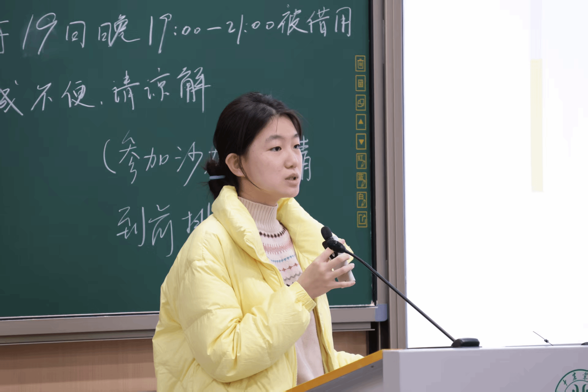 沙龙伊始,主持人刘昱含简短介绍了活动流程后,经验分享环节正式开始。首先,刘天奕结合自身参与国创项目的经历,系统介绍了各类创新创业比赛及大创项目的基本情况。随后,她着重讲解了项目申报书的撰写细节,从选题立意、研究内容到技术路线、预期成果等方面逐一拆解,并提醒同学们注意逻辑的连贯性和表述的精准性。她的分享内容详实,案例生动,为地信专业的同学提供了极具针对性的参考。
