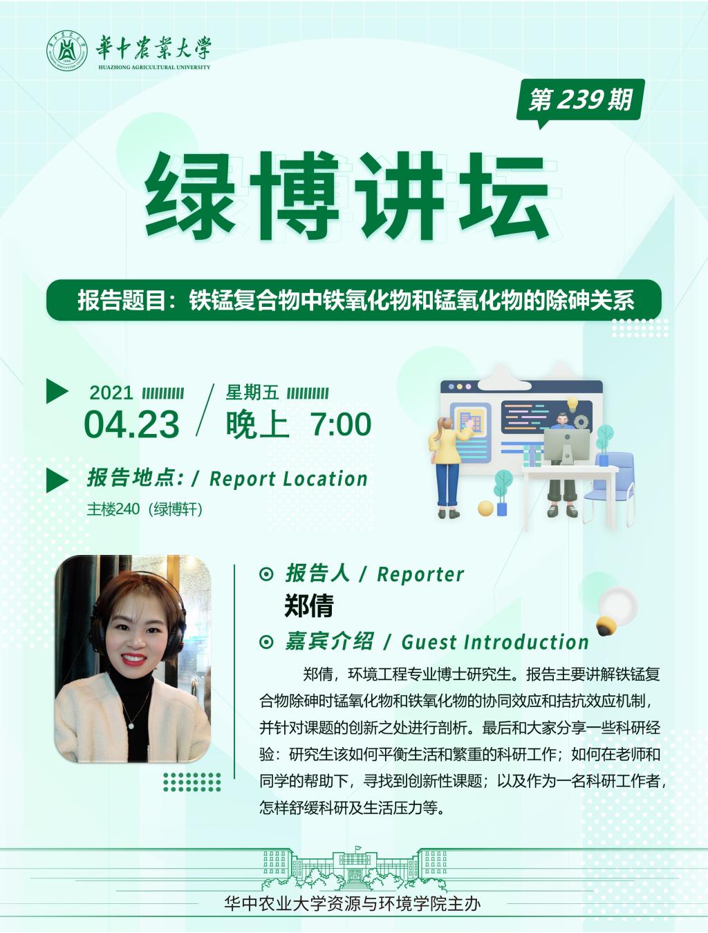 【绿博讲坛】铁锰复合物中铁氧化物和锰氧化物的除砷关系