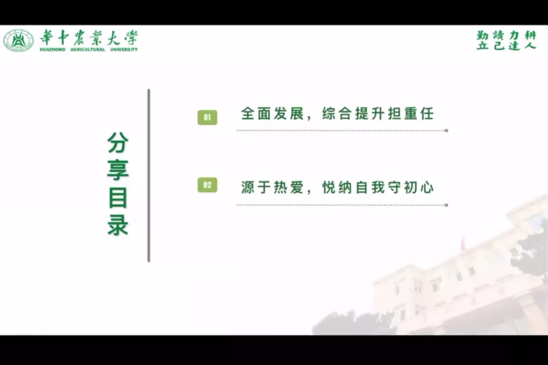 李艳峰介绍了学生会和青年传媒中心各个部门的工作内容,并且围绕自己在学生会秘书处两年的工作生活经历,层层展开,分享了她在学生会收获友谊、逐渐成长的故事。