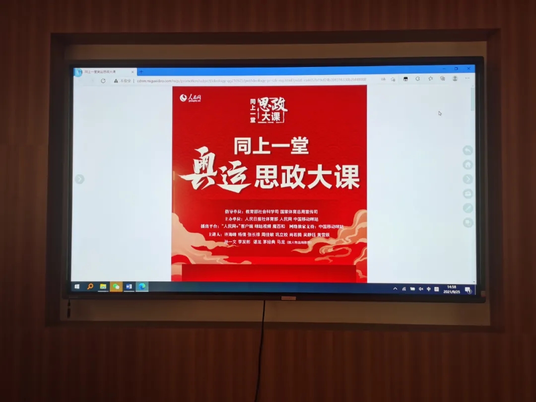 9月25日下午,为深入贯彻落实关于深化思想政治理论课改革创新和“大思政课”的重要指示批示精神,在教育部社科司、国家体育总局宣传司指导下,人民日报社体育部与人民网联合举办的《同上一堂奥运思政大课》开讲。我院辅导员和30余同学在主楼315进行了集中观看。