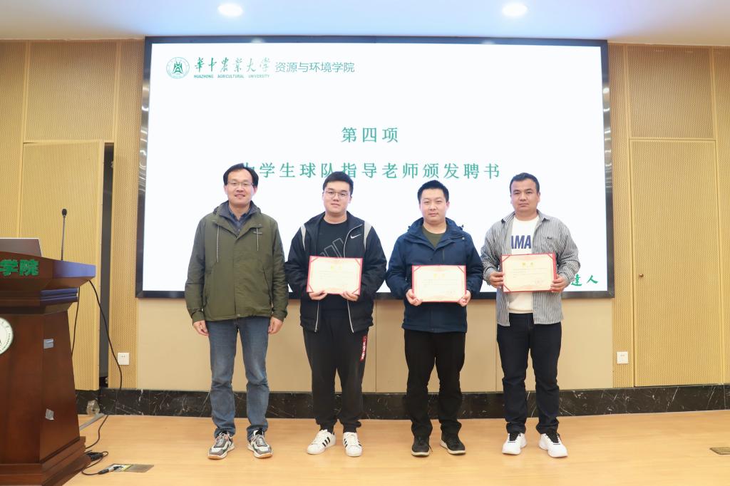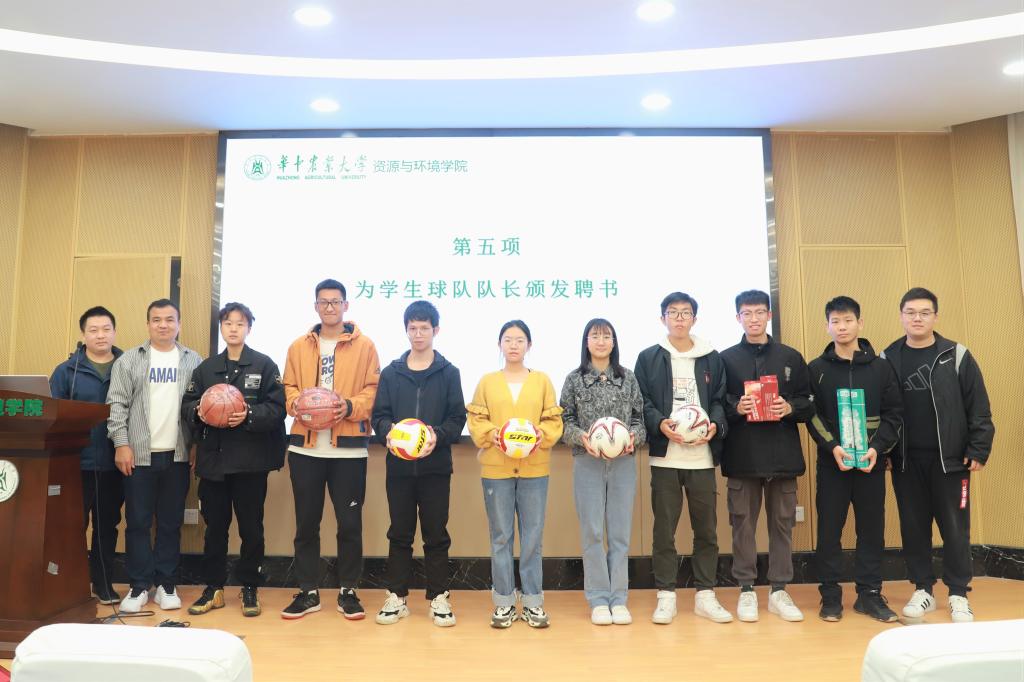 为进一步保障学院学生球队组织建设,加强对各球队的组织扶持、人员支持、训练帮持,学院为五支球队购置了篮球等训练物资,同时学院也任命了院级学生球队的指导教师和队长。随后,熊海林为指导老师和球队队长颁发了聘书。