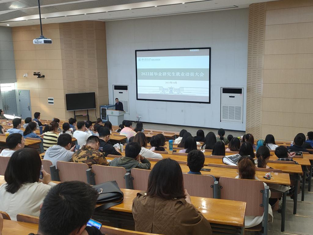 为帮助毕业生认清就业形势、了解就业流程,更好更快实现高质量就业,10月28日上午,学院在三教S2报告厅组织召开2022届毕业研究生就业动员大会。学院党委副书记熊海林参加大会并做就业形势分析与就业动员,研究生辅导员胡志宏主持大会。